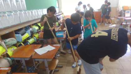 4月から1年生教室にも6年生がお手伝いに行っています。2学期に入って、1年生も雑巾がけを一緒に頑張っていました。1年生のよいお手本になれるように、これからもいろんな面で頑張ってほしいです!