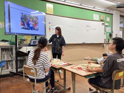 新しいALTの先生と、3組の教室で一緒に給食を食べました。先生のことがたくさん知れてみんな嬉しそうにしていました。