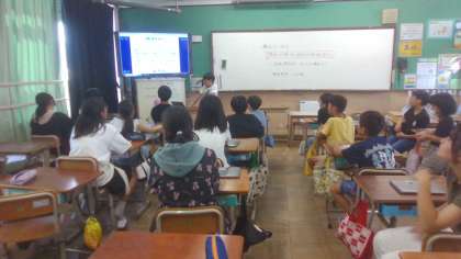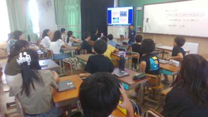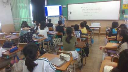 京都の1日おすすめ観光についてまとめたことを1組・2組合同で発表会をしました。実際に行ったことを交えて話しをしてくれる子もいました。