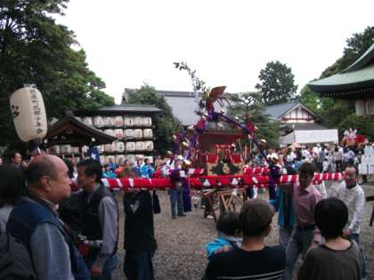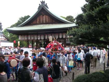 たくさんの子ども神輿がありました。かけ声も勇ましく,町内まで神輿をひき歩きました。