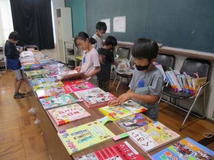 学校の図書館に入れてほしい本をたくさんある本の中から2冊それぞれ選びました。色々な種類の本の中からどれがいいのか迷う子どもたちの姿がありました。どんな本が図書室に入ってくるのか今からとても楽しみな様子でした。