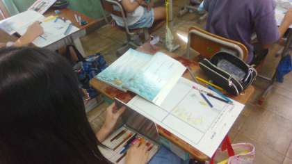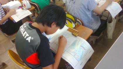 「やまなし」の作品世界を捉えるために、「五月」と「十二月」を簡単な絵や図に表して、場面の様子を想像しました。