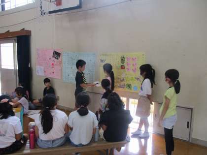 梅津小学校と総合の学習で交流をしました。はじめての交流だったので発表も少し緊張する様子がありましたが、だんだんと発表を重ねるうちになれてきて、上手に発表できるようになっていました。発表の後は、梅津小学校の3年生からリコーダーの発表、梅津北小学校の3年生は体育でも練習に取り組んでいる京炎そでふれを踊りました。交流を通して学びを深めることができました。