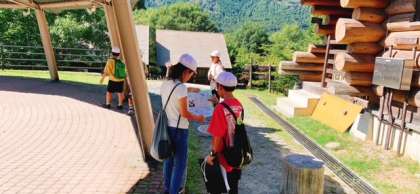 スコアオリエンテーリングをしています。所内の様々な場所にあるポイントをまわり、問題を解いていきます。グループで協力しながら答えを考えました。