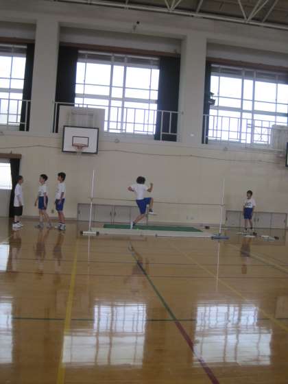 自分で目標をもち,高い高さが跳べるように練習しています。