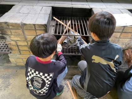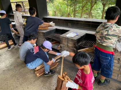 野外炊事が始まりました。