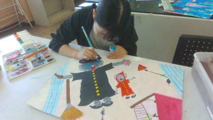 図画工作科「お話の絵」に取り組んでいます。6年生は「どすこい」「へそまがりの魔女」というお話をもとに、想像を膨らませながら描きました。最後までねばり強く、一生懸命色をぬる姿がありました。たくさんの、すてきな作品が完成しました。