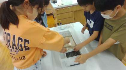 水を流す前と流した後との違いを見て、どのような働きがあるかを考えることができました。
