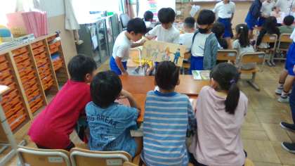 1年生はドキドキしながらも、3年生の読む絵本に夢中になって真剣に聞いている様子でした。