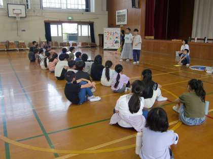 ボッチャで一緒に遊びました。「とても面白かった!」「知らず知らずに本気になっていた。」という感想が聞けました。3組の友達と協力してチームワークで楽しんでいましたた。