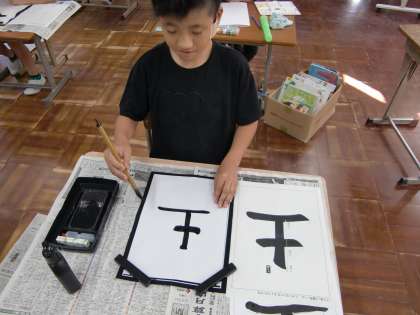 書写の学習に取り組みました。とめやはらいにきをつけて集中して丁寧にかくことができました。