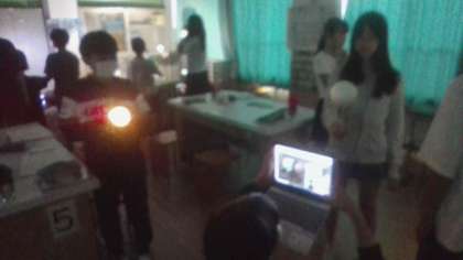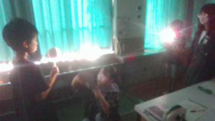 月の形の見え方と太陽の位置にはどんな関係があるのかを実験して調べました。