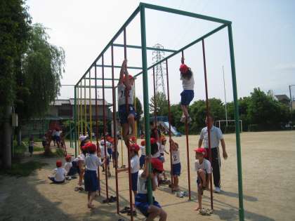 また、友だちが巧みにゆうぐに登る姿を見て、「カッコイイ」と声を挙げている子もいました。