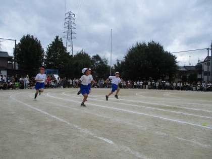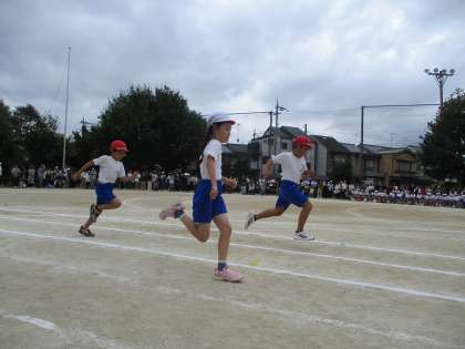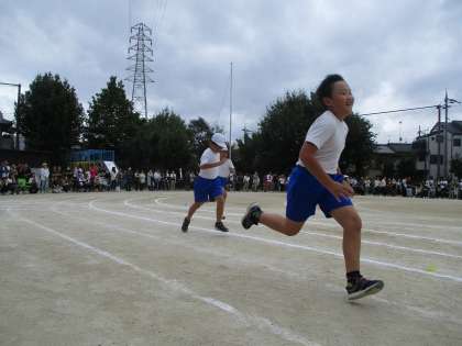 中学年になって初めて80m走を走りました。たくさんの人の中で走るのでスタート位置に立つと普段はあまり見られることがないとても緊張する顔がありました。温かい応援の中で最後まで力いっぱい走りきることができました。