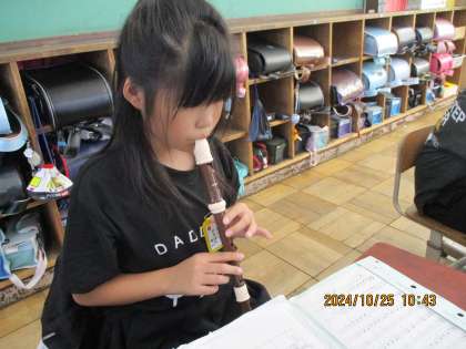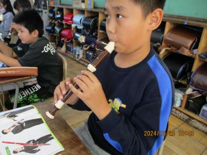 音楽の学習では、みんなでリコーダー曲「オーラ リー」の演奏をしました。