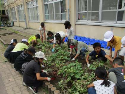 地域のゲストティーチャーの方に、さつまいものお話や掘り方を教えていただき、「いも掘り」をしました。