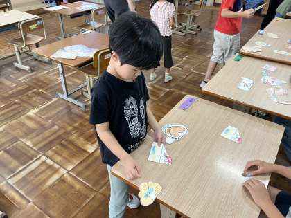 お買い物学習がはじまりました。それぞれの予算で買いたいものを考えています。
