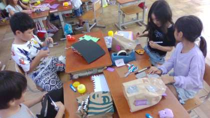 昨日に引き続き、児童は夢中でパクパックを作っていました。