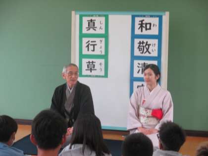 ゲストティーチャーをお招きし、茶道体験をしました。まずはおじぎの仕方から丁寧に教えていただきました。おじぎの仕方ひとつひとつにも意味があることを知りました。