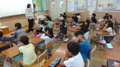 嫌いな食べ物に少しでもチャレンジしてみようという前向きな授業で子どもたちもたくさん手を挙げていました。