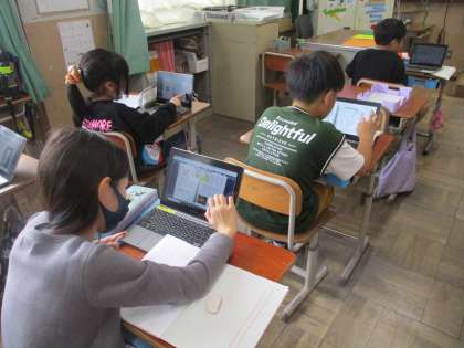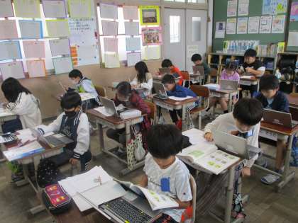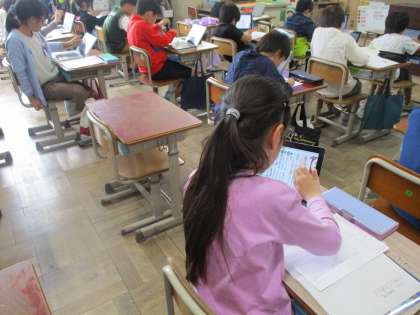 国語の学習でことわざについて学習をしました。教科書にのってる八つのことわざについて、ことわざ辞典を使って調べました。難しい言葉もどういう意味なのかを先生に聞きながら一生懸命に意味を理解しようと学習を進めていました。