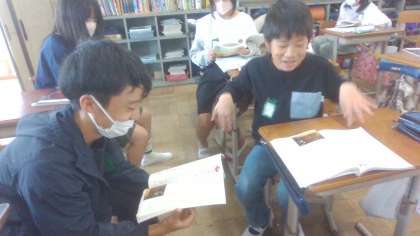 狂言「柿山伏」を読み、音読したり、演じたりしました。登場人物になり切って、楽しみながら学習する姿がありました。