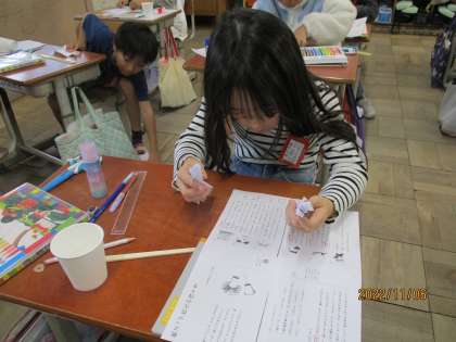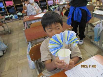 国語科では「紙コップ花火の作り方」の学習をしています。