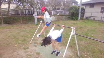 5年生の体育科では、鉄棒運動に取り組んでいます。