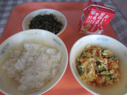 ごはん、牛乳、あげたま煮、ほうれん草のごま煮