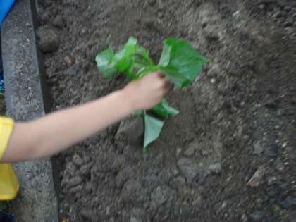 さあ,みんなで植えたさつまいもの苗,しっかり水やりをして大きく育てます。