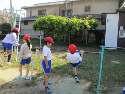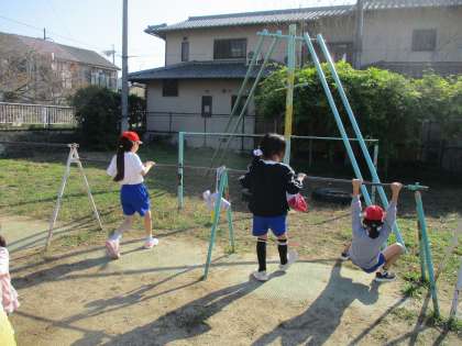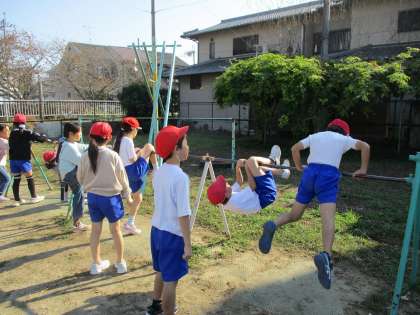 友達にアドバイスをもらったり、お手本の動画をみたりしながらてつぼうの技に取り組んでいます。逆上がりや抱え込み前回り、足かけ回りなどどんな技を頑張るのかめあてをもって一生懸命練習をしていました。