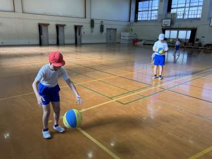 体育では、ボール運動に取り組んでいます。上手に投げたり、キャッチしたりできるように頑張っています。