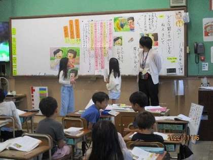 道徳「ねえ聞いて」の学習では、みんながうれしくなる聞き方について考えを深めました。子どもたちの振り返りを紹介します。