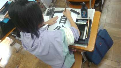 今日は、毛筆で「自然」という字を書きました。
