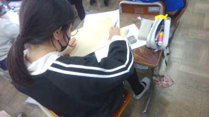 どの線を糸のこで切るかを確認しながら書き進める姿が多く見られました。