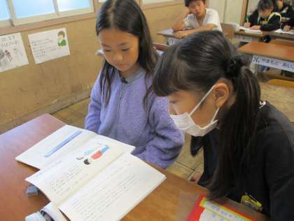 本文を読んで、物語のおもしろさについて考えたことを話し合いました。