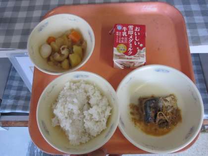麦ごはん、牛乳、さばのしょうが煮、関東煮