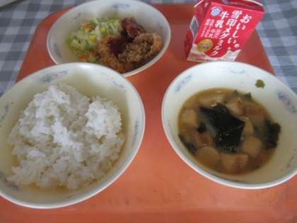 ごはん、牛乳、ヒレカツ、野菜のソテー、みそ汁
