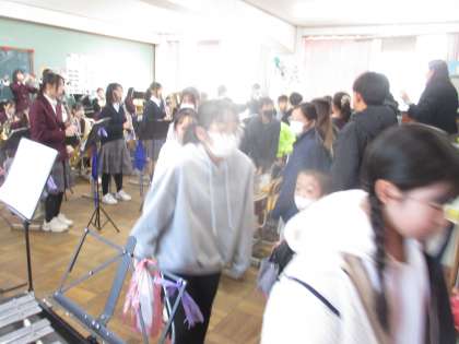 授業後は部活動の様子を見学しました。中学校の先輩たちが順番に案内をしてくれました。子どもたちにとって、期待膨らむ体験になったのではないかと思います。中学校進学を見据え、残り少ない小学校生活を大事に過ごしていってほしいと思います。