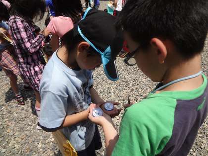 方位磁針の使い方も学習し,自分がどっちの方向を向いているのか確認しながら歩くこともできました。