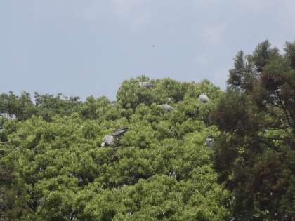 梅の宮大社の木の上に,たくさんのサギがとまっていてびっくりしました。