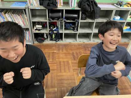 音楽で「おちゃらかほい」を歌いました。 全力で手を動かして盛り上がりました。