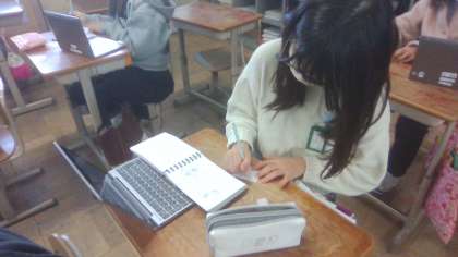 卒業アルバムのクラスページ作りに各クラスで取り組んでいます。座右の銘、将来の夢・・・それぞれ一生懸命悩みながら書く姿がありました。