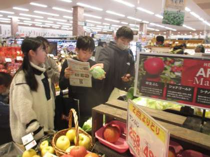 家庭科の授業で、調理実習を行いました。今回は、初めて自分たちで買い出しもしました。予算に合わせて鮮度や質を見極めながら、材料を買い、班で協力しながら活動する姿が多く見られました。