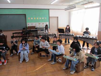 音楽の学習ではパフを合奏しました。リコーダー、ピアノ、オルガン、鉄琴や木琴などの楽器を使って演奏しました。一人一人が一生懸命練習をした成果もあり、とても綺麗な音色で演奏をすることができました。