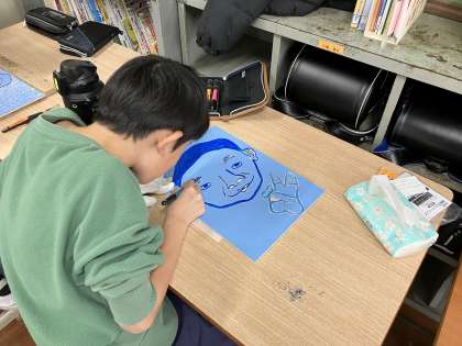 高学年は版画を掘り進めています。集中力を高め、安全に気を付けながら頑張っています。