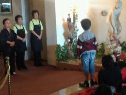 バスが出発する前に,ホテルの方とお別れの式を行いました。