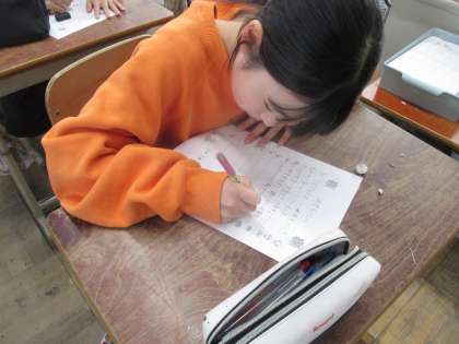 給食週間の取組で、調理員さんに日頃の感謝の気持ちを手紙に書きました。ていねいに思いを込めて書きました。大切に届けたいと思います。