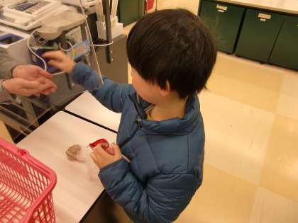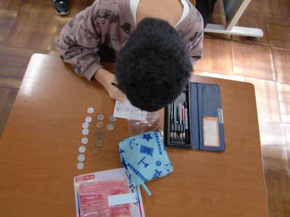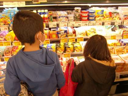 19日(木)のクッキングに向けて必要な材料をフレンドマートに買いに行きました。買う材料を分担し買い物しました。もっているお金で支払いができるのか確かめレジで支払いをしました。それぞれ自分が買うものしっかりと買うことができました。