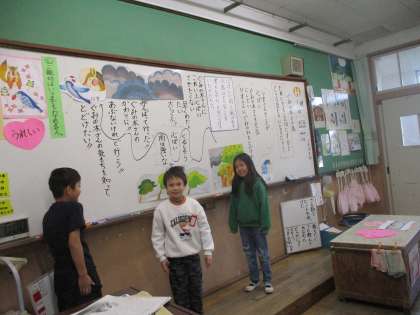 道徳「ぐみの実と小鳥」の学習では、親切にすることで、相手も自分も、周りの人たちも温かい気持ちになることに気づき、困っている人に優しく接していくことの大切さについて考えを深めることができました。